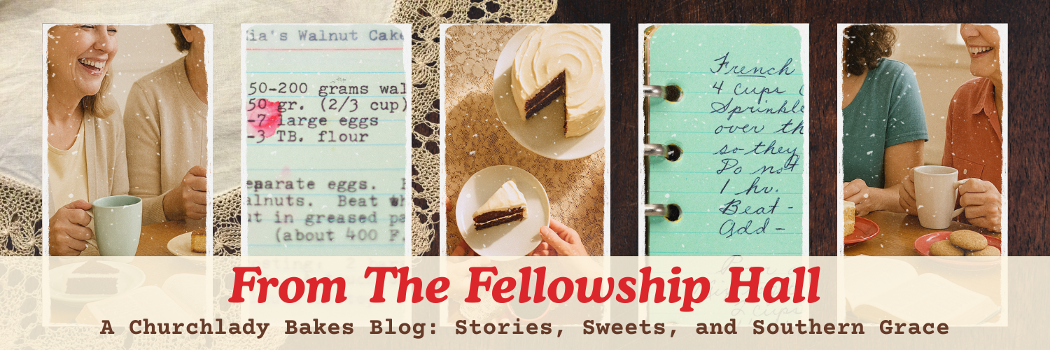 Now don’t be shy. Come on in and find yourself a seat. We may not have matching chairs, but every one of them has held a story. There’s a casserole dish on the counter, a pound cake cooling by the window, and mercy, someone brought the good tea. You’re officially in the Fellowship Hall, the heart of Churchlady Bakes.